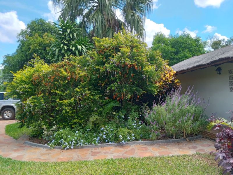 Rechts und links des Hauses sowie gegenüber sind paraguayische Nachbarn, manche mit Hühnern, wo man sich die Eier frisch kaufen kann, im Dorf selbst gibt es einen kleinen Supermarkt in dem man 6 Tage die Woche die wichtigsten lebensnotwendigen Dinge erhalten kann und natürlich noch einige kleine Geschäfte wie eine Bäckerei, einen Getränkeladen, einen Eisenwarenhandel, Baumaterialhandel, ect.