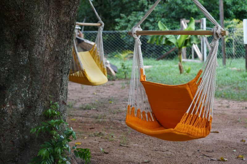 - eigene, stimmungsvoll beleuchtete Terrasse, Fenster mit Moskitogittern und Blick in den Garten