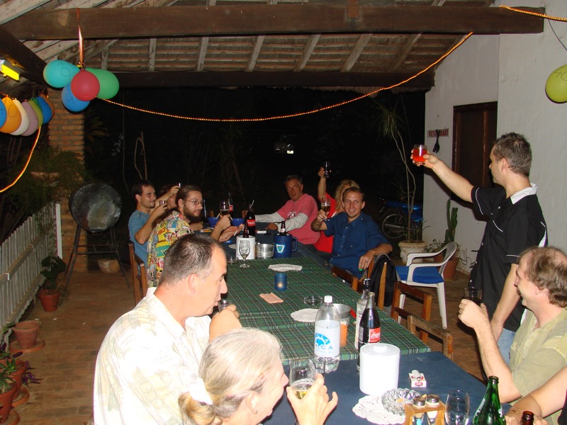 Hier sieht man vier Bilder von einer wieder sehr persönlichen Feier am 04. März 2007 im Hotel-Restaurant Paraíso in Villarrica, Paraguay, Südamerika